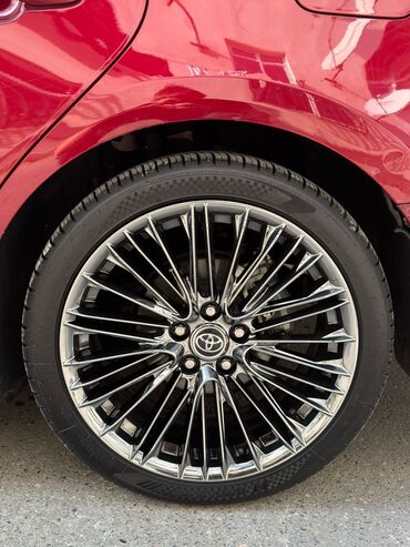 Toyota orijinal yüngül lehimli disklər və təkərlər komplekti - Marka/Model uyğunluğu: Toyota (mərkəz qapaqlarında Toyota loqosu) - Disk ölçüsü: 20" (təxmini; çoxşaxəli, parlaq xrom effektli dizayn...