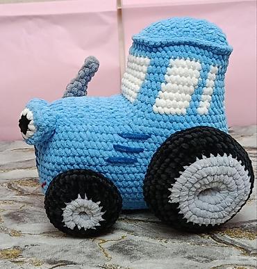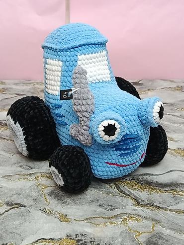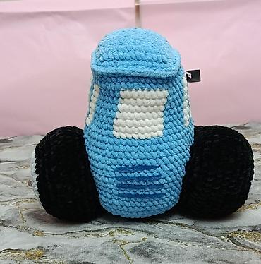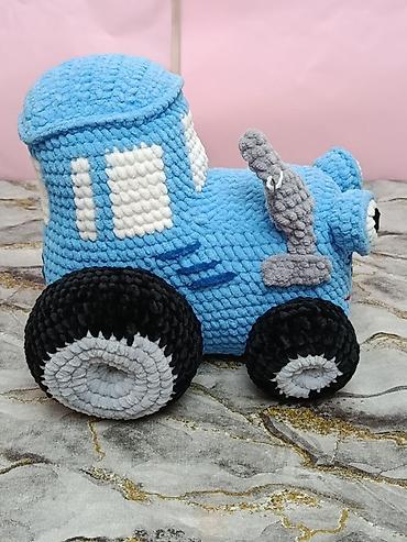 Sevimli mavi traktor balacaların diqqətini cəlb edən parlaq rənglərə və rahat toxunuşa malikdir; həm oyun, həm də dekor üçün uyğundur.