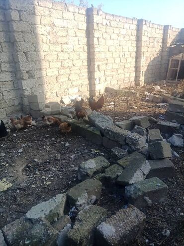 Yerli təsərrüfatdan qarışıq cins ev toyuqları və xoruzlar - Sayı çoxlu, sürü şəklində - Rəng və naxışlar: qara, ağ, qəhvəyi, boz, çilənmiş və ləkəli tonlar - Yaş qrupları qarışıq, yumurtalıq və da...