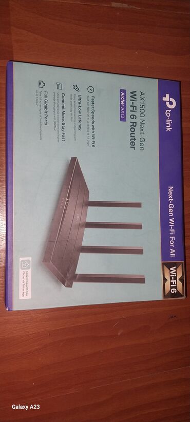 Təcili satılır, 140 azn alınıb 1 ay istifadə olunub TP-Link Archer AX10 (AX1500) Wi‑Fi 6 router - Standart: Wi‑Fi 6 (802.11ax), AX1500 sürəti - İki zolaq: 2.4 GHz və 5 GHz, OFDMA və MU‑MIMO dəs...
