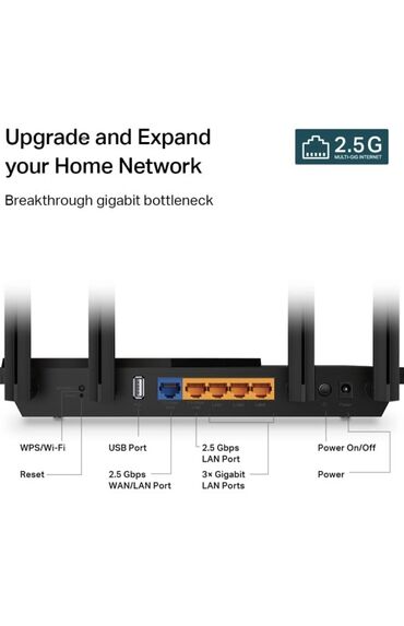 TP-Link Archer AX55 PRO 2.5G portlu AX3000 Multi-Gigabit Wi-Fi 6 Router 📌Daha sürətli Dual-Band AX3000 WiFi: 3.0 Gbps-ə qədər (2402 Mbps + 574 Mbps) Wi-Fi, eyni zamanda daha sürətli gəzmək, yayıml...