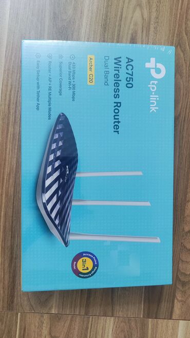 TP-Link Archer C20 AC750 Dual Band simsiz router modem cox az iwlenili. artiq olduqu ucun satilir - 2.4 GHz (300 Mbps) + 5 GHz (433 Mbps) ikizolaqlı Wi‑Fi - 3‑ü‑1: Router + Access Point + Range Ex...