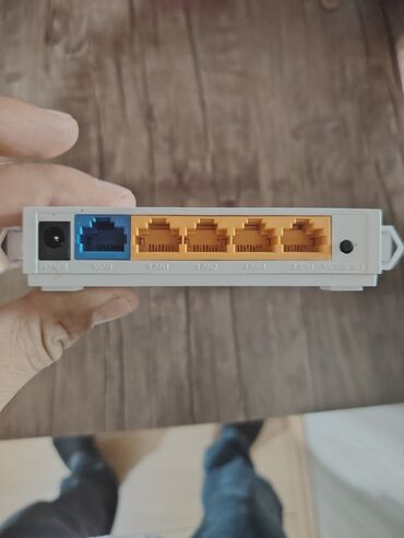 - Portlar: 1× WAN (mavi), 4× LAN (sarı), WPS/Reset düyməsi, DC Power girişi.