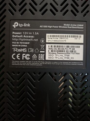 TP-Link Wi‑Fi marşrutizatoru - Model: TP-Link Archer C20 (etiketdə