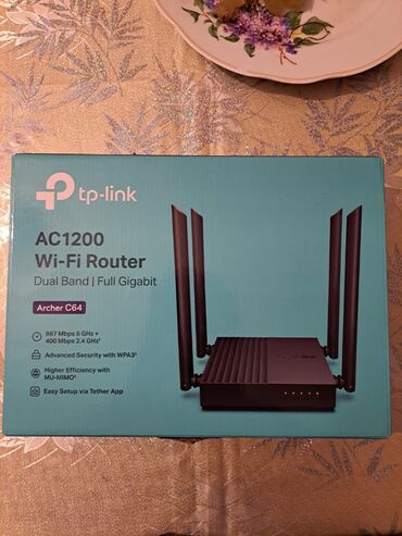 TP-Link Archer C24 (EU) AC750 Dual Band Wi‑Fi Router Xüsusiyyətlər: - İki zolaqlı Wi‑Fi: 2.4 GHz və 5 GHz (SSID: TP-Link_ECCD və TP-Link_ECCD_5G) - Sürət sinfi: AC750 - 4 ədəd xarici antena – siqn...