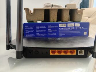 TP-Link Archer seriyalı ikizolaqlı Wi‑Fi router Xüsusiyyətlər: - Brend/model: TP-Link Archer AC1750/AC1900 tipli dizayn (parlaq qara korpus, romb naxışlı üst hissə) - 4 ədəd xarici antena – geniş ...