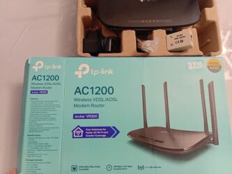 Yenidir cox az istifade olub TP-Link Archer VR300 – AC1200 Wireless VDSL/ADSL Modem Router Xüsusiyyətlər: - İkizolaqlı Wi‑Fi: 2.4 GHz və 5 GHz birlikdə AC1200 sürətə qədər - Dörd ədəd yüksək qaza...