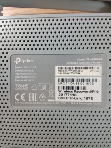 TP-Link TL-WR840N (EU) 6.20 versiya modem yaxşı vəziyətdədir qutusu yoxdur. Əlaqə saxlamaq istəyən qeyd olunan nömrənin vatsapına yaza vəya zəng vura bilərlər. ŞƏHƏRDAXİLİ ÇATDIRILMA PULSUZDUR