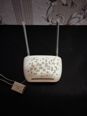 Başlıq: Tp link ( vay-fay) Təsvir: TP-Link ADSL modem/router. İki antenli simsiz yönləndirici. Qutusu və şəbəkə adapteri ilə birlikdə. Üzərində “ADSL Modem Wireless Router”, “300 Mbps Wireless Spe...