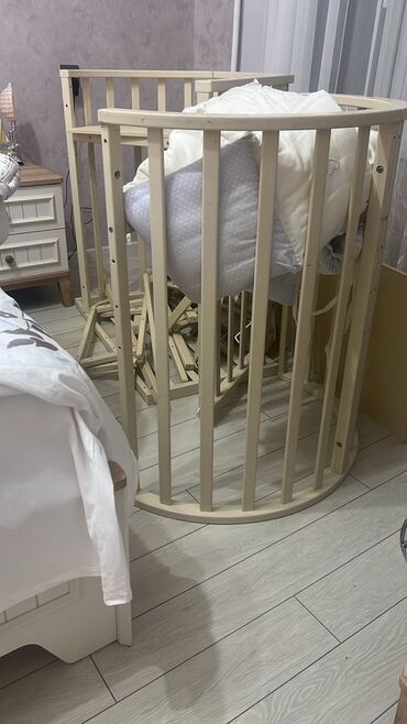 Ushaq ucun beshik satilir Almaniya istehsali,esl agac,ic hissesindeki parca temiz cotton Hem duz formada saxlamaq mumkundur,hem beshik kimi yellenir 20azn