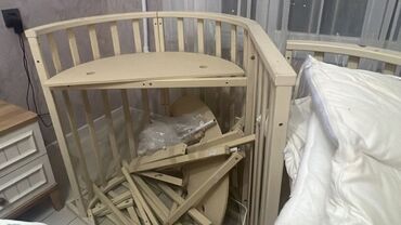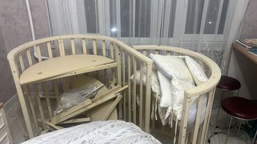 Uşaq beşiyi və çevrilən masa dəsti Alinib qurulub az islenib.hem yumuru,hemde oval boyuk olcude olur.iki matrasi var,tulu bortu ustunde verilir.
