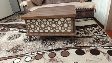 Transformasiya olunan qəhvə masası - Material: ağac teksturalı MDF/LDSP (isti qoz rəngi). - Funksiya: qaldırılıb açılan mexanizm sayəsində qəhvə masasından tam ölçülü yemək masasına çevrilir. - Üs...