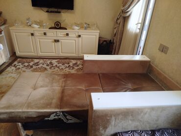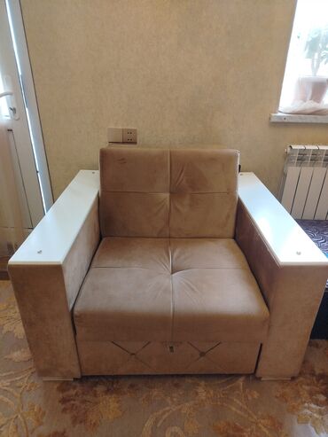 - Qollar: hər iki tərəfdə parça ilə üzlənmiş iri qol dayaqları, üstü ağ rəngli sərt dekorativ panel (stolça funksiyası da görür).