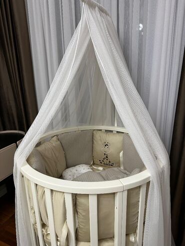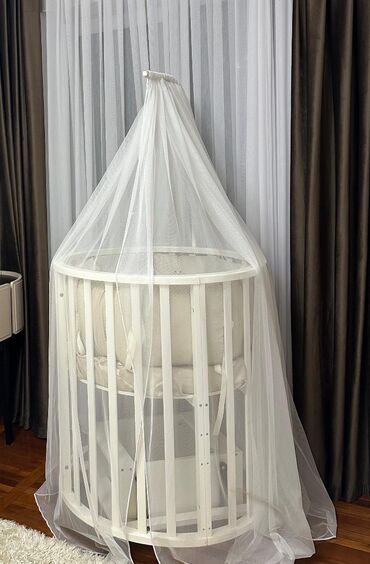 Uşaq üçün komplekt: 1) Yan çarpayı/besik – valideyn çarpayısına yaxın yerləşdirmə üçün uyğundur. • Hündürlüyü tənzimlənən metal karkas • Yan tərəfdə fermuarlı açılan pəncərə və nəfəsalan tor mater...