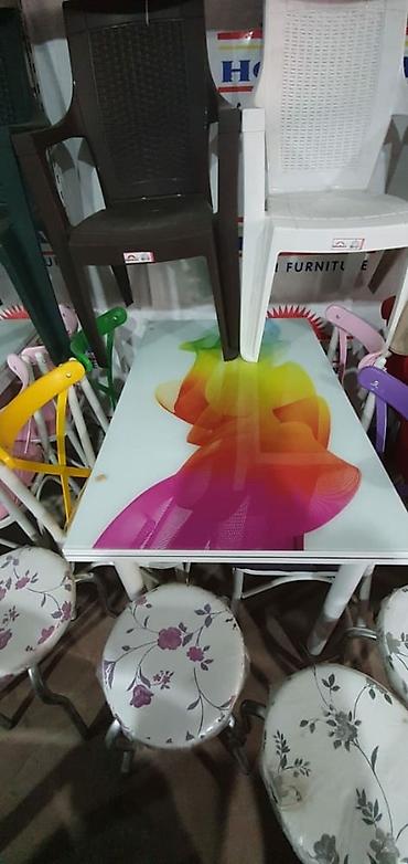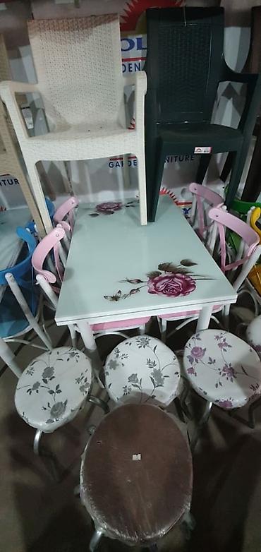Açılan masa + 6 stul dəsti - Masa: oval formalı, açılıb-böyüyə bilən mexanizmli, möhkəm üst səth və dekorativ qara baza. - Stullar: 6 ədəd, yumşaq oturacaq və arxalıq, qara karkas; rahat və stabil...