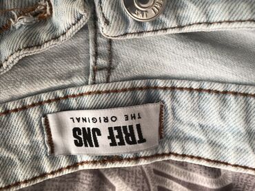 TRE JNS markalı açıq mavi rəngli cins şalvar - Kəsim: düz/klassik paça - Rəng: açıq mavi (light wash) - Ön hissə: fermuarlı və metal düyməli bağlanma - Ciblər: 5 ciblidir (2 ön, 1 kiçik pul cibciy...