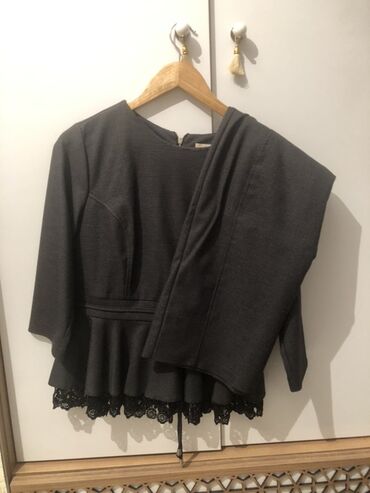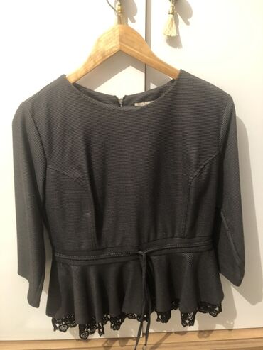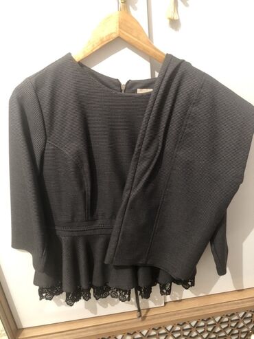 Qadın uzunqol bluz - Rəng: tünd zeytun-yaşıl - Model: qısa kəsim (crop), ön hissədə xərəkli/çarpaz detallı dizayn - Yaxa: açıq V-effektli, çarpaz qatlarla - Qol: uzun, düz kəsim - Parça: elastik, y...