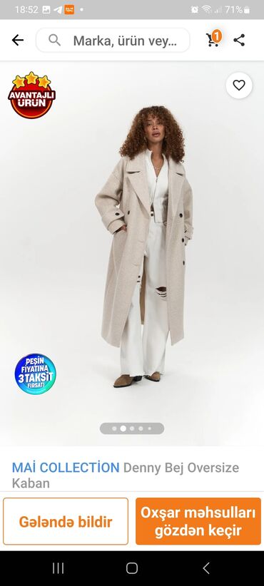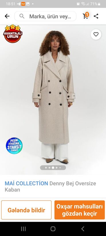EndirimsizTrendyoldan bu paltonun qimetine baxin.Cox gozel samballi paltodur.180 azn +16 azn karqo pulu odemiwem.120 azn satiram..Tezedir.44 razmerden 48 razmere uyğundur..Tecili satilir..Endirimcün narahat elemiyin.Qiymet sondur..