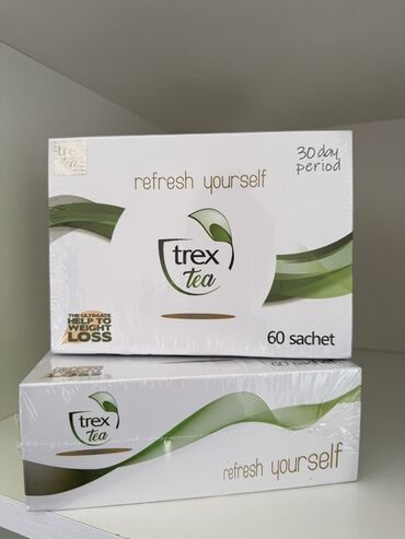 - Açar dizayn elementləri: yaşıl dalğalı dekor, Trex Tea loqosu