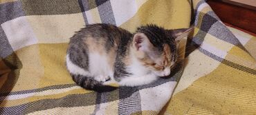 Üçrəngli (calico) balaca pişik - Cinsi: dişi calico - Rəngi: ağ‑narıncı‑boz naxışlı, ağ pəncələr və döşlük - Gözlər: iri, ifadəli - Quyruq: zolaqlı - Xasiyyət: sakit və oynaq, ev şəraitinə uyğun, o...