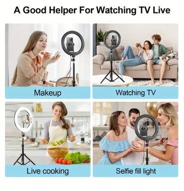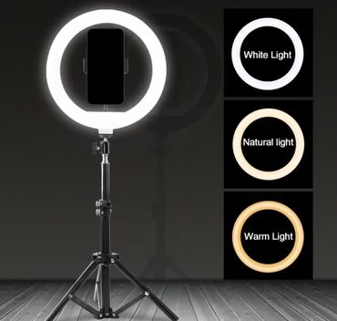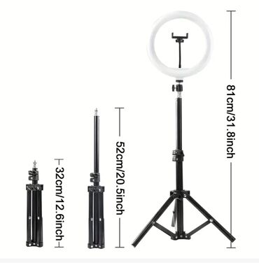 Komplekt: həlqə LED işıq, tənzimlənən tripod, telefon tutacağı.