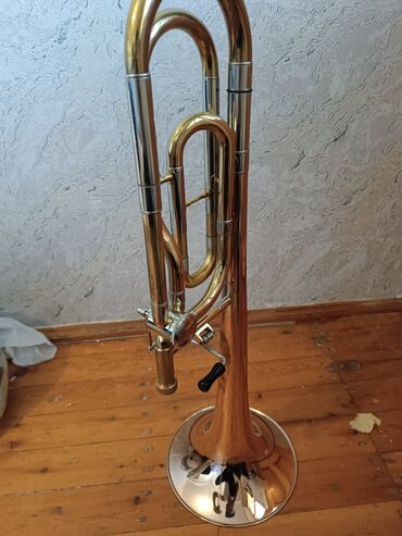 Misinstrument: Boru (trampet) Təsvir: - Klassik pirinç korpus, 3 pistonlu mexanizm - Ağızlıq (mundşik) komplektdədir - Tənzimləmə sürüşməsi və su açarı görünür - Səslənməni güclü və parlaq edən ge...