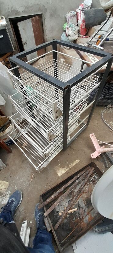 Metall çərçivəli loft üslubunda rəf sistemi - Dizayn: Asimmetrik, pilləli kompozisiya; açıq karkas konstruksiya. Otağa yüngül və müasir görünüş qatır. - Material: Qara metal karkas + açıq rəngli t...