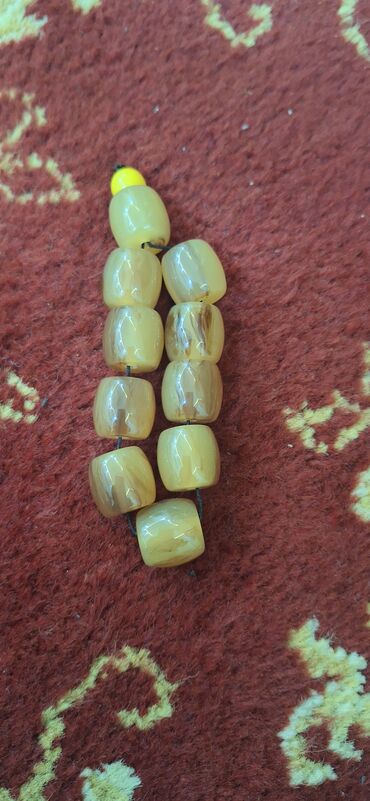 Cox qedim kehraba zop eriden muncuq. Sarı rəngli muncuq təsbeh - Material: parlaq sarı, silindrik/kvadratabənzər muncuqlar - Hissələrin sayı: təxminən 18 ədəd iri muncuq + uc hissədə bəzək muncuğu...