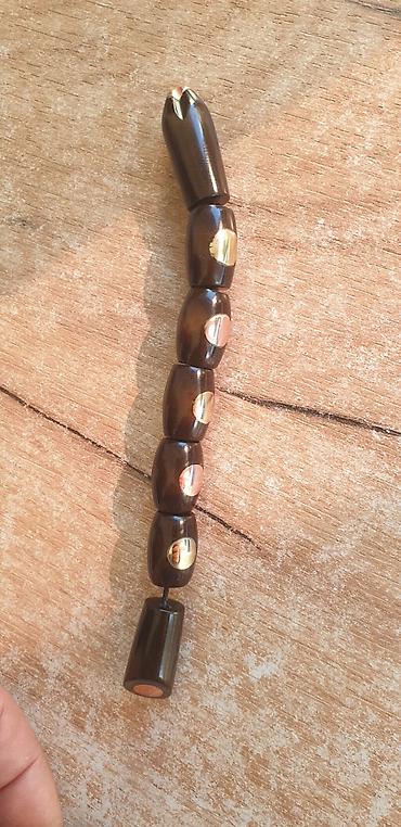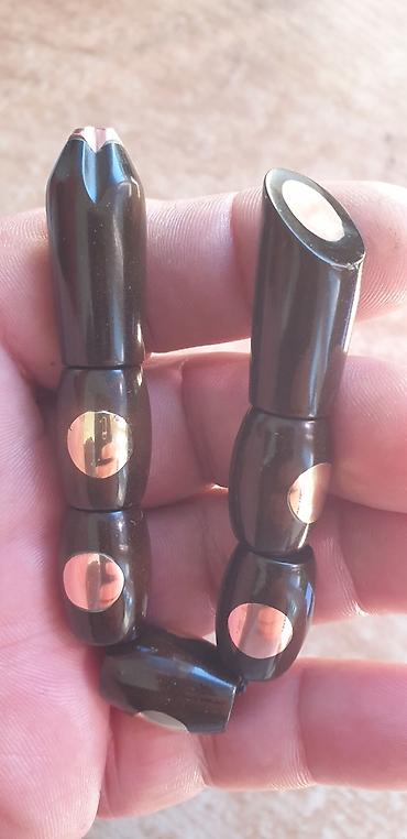 Əl işi Təsbeh – ağac muncuqlu, saçaqlı model - Material: tünd rəngli, cilalanmış ağac muncuqlar - Muncuq sayı: təxminən 22 böyük muncuq + 2 vurğu muncuq - Forma: iri, yumru-silindrik muncuqlar, ha...
