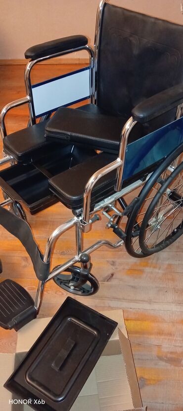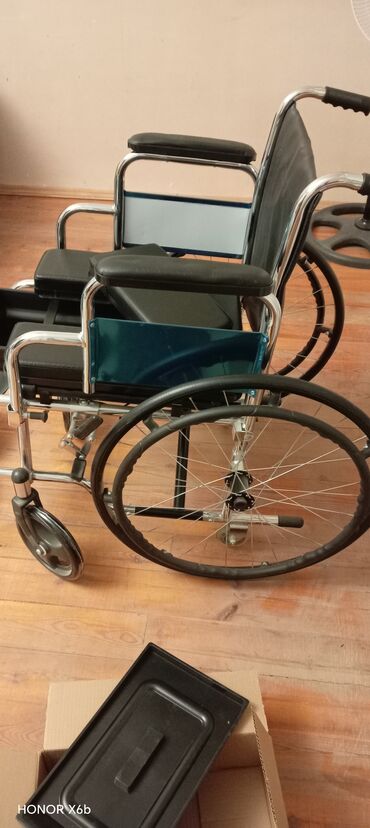 - Universal 2‑in‑1 model: həm hərəkət üçün əlil arabası, həm də sanitar oturacaq kimi istifadə olunur.