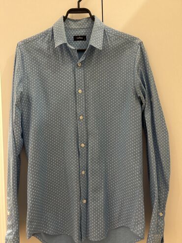 Burberry London kişi köynəyi - Model: klassik düyməli köynək - Rəng: açıq mavi - Yaxa: sərt/classic collar - Qol: uzunqol, manjetli - Ölçü: 37 (etiketdə 180/92A 37 göstərilir) - Material: incə, yü...