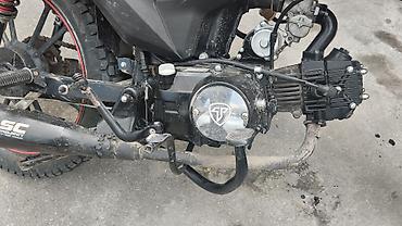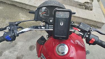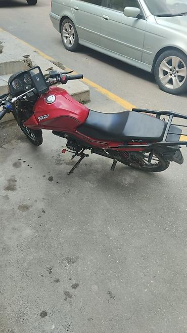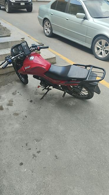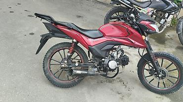 Motosiklet – Tufan (marka m50n üzərindədir), qırmızı rəngli, şəhər və yüngül ofroud üçün uyğun enduro/krossover tərzi.