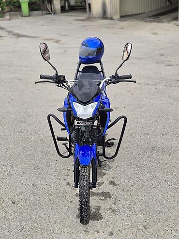 Mavi rəngli şəhər/naked tipli motosiklet Texniki xüsusiyyətlər və detallar: - 4-takt, hava ilə soyudulan birsilindrli benzin mühərriki - Karbürator sistemi - Mexaniki (sürətlər qutusu əl ilə) ötür...