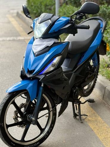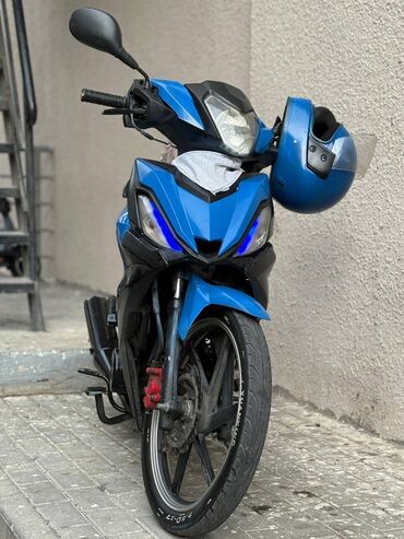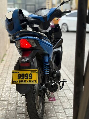 Moped/motosiklet – mavi rəng - 4 vuruşlu benzin mühərriki, hava ilə soyutma - Mexaniki ötürmə (ayaqla çevrilən sürətlər) - Zəncir ötürücü - Ön disk, arxa baraban əyləc sistemi - Alüminium tipli 5 ...