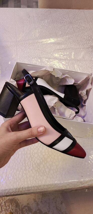 MARSEDO qadın gündəlik stiletto ayaqqabısı İstifadə: Sadəcə 1 dəfə geyinilib. Ölçü: 37 Qiymət: 60 azn alınıb, 25 azn satılır. - Model: Femme, sivri burunlu, arxası açıq (slingback) - Üst hissə: ç...