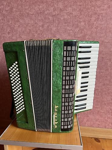 Akkordeon – klavişli və bas düyməli - Klassik dizaynlı, gövdəsi yaşıl-şabalıdı rəngli nac‑nac örtüklə. - Sağ tərəfdə klaviatura: ağ-qara klavişlər, melodik ifa üçün. - Sol tərəfdə çoxsıralı bas və...