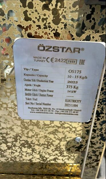 Tum qovuran aparat 7kq/saat 9500 AZN - elektrik 0 faza 15 kq/saat 15500 AZN - elektrik 3 faza 25 kq/saat 17500 AZN - elektrik 3 faza 15 kq duzlama daxil 16500 azn