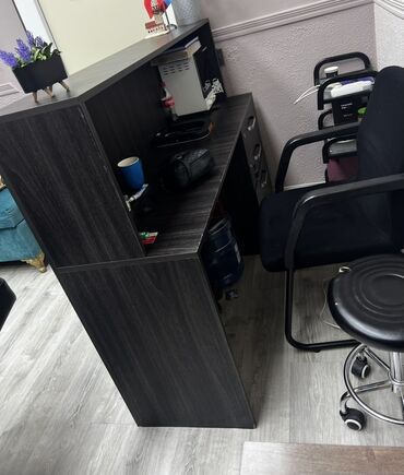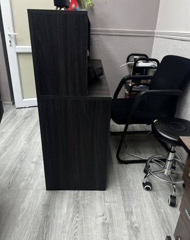 - İş tərəfi: geniş əsas stol, üst rafta əlavə polka; sənədlər və aksesuarlar üçün yan qapalı bölmə/çekmecə bloku