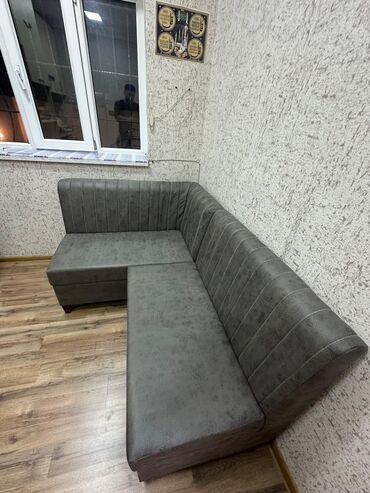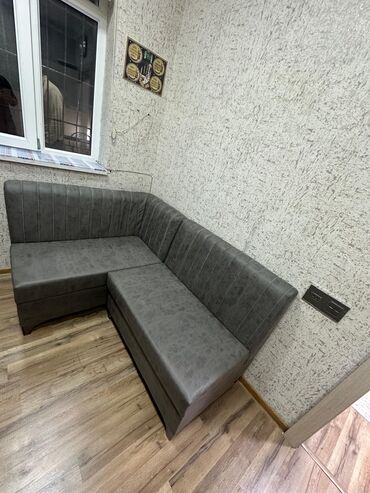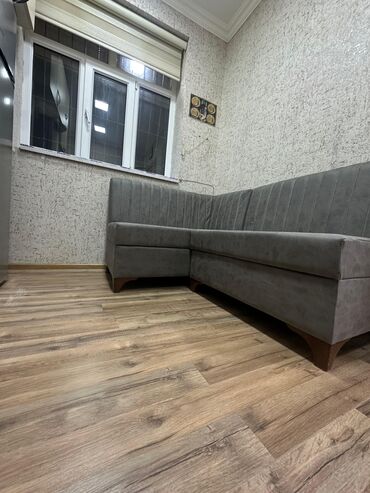 Səliqəli tikişlər və kompakt ölçülər sayəsində mətbəx masası ətrafında rahat oturma zonası yaradır. Künc quruluşu sahəyə qənaət edir, taxta ayaqlar isə sabitlik və estetik görünüş verir.