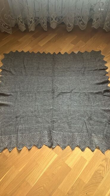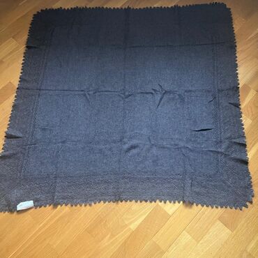 Krem rəngli, kənarları naxışlı dekorativ örtük/şal. - Material: nazik