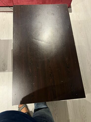 Ağac teksturalı, tünd qəhvəyi rəngdə yemək/iş masası.