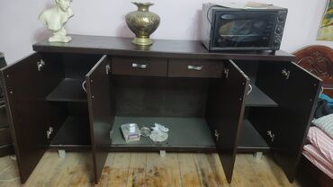 Klass Ik üslubda taxta bufet/komod - Material: temiz fil sũmũyūnden Kamod skafmassiv - Rəng: isti qəhvəyi (cilalanmış) - Dizayn: üzərində oyma dekorlar, klassik naxışlı panellər - Quruluş: - Ü...