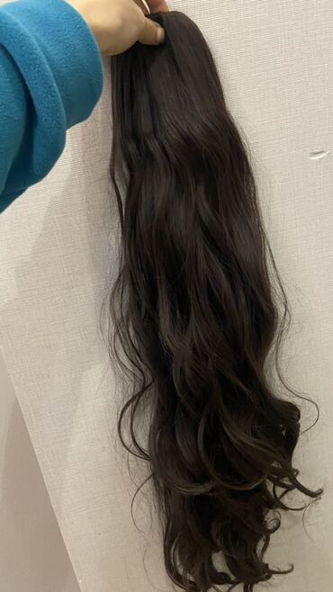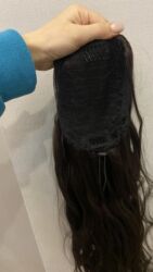 Təbii tünd qəhvəyi rəngdə uzun saç teli (saç əlavəsi).