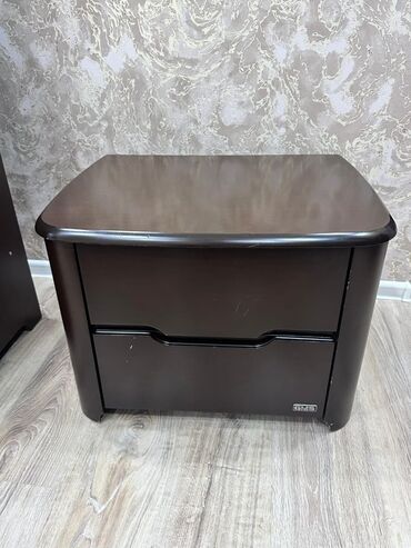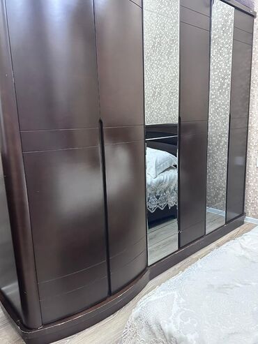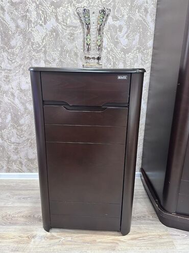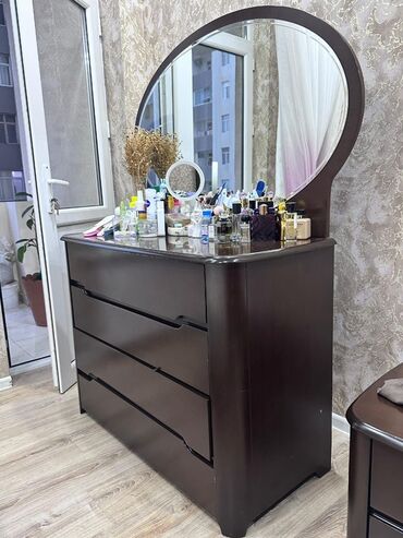 - Paltar komodu: 4 geniş siyirməli, tutacaq yerinə inteqrə olunmuş oyma xətlər. Üst hissədə iri dairəvi güzgü (yarımdairə forması) ilə birlikdə.