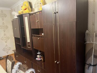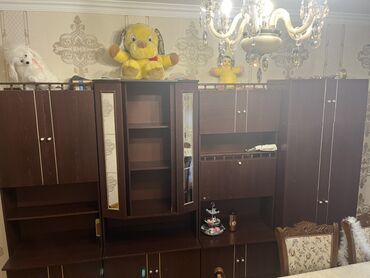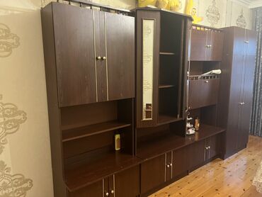 Klassik divar dolabı/gostinaya “stenka” dəsti - Material: ağac əsaslı (laminat/MDFlam görünüşlü), açıq fındıq rəngli. - Komplekt tərkibi: bir-birinə birləşən çoxmodullu hissələrdən ibarətdir. - ...