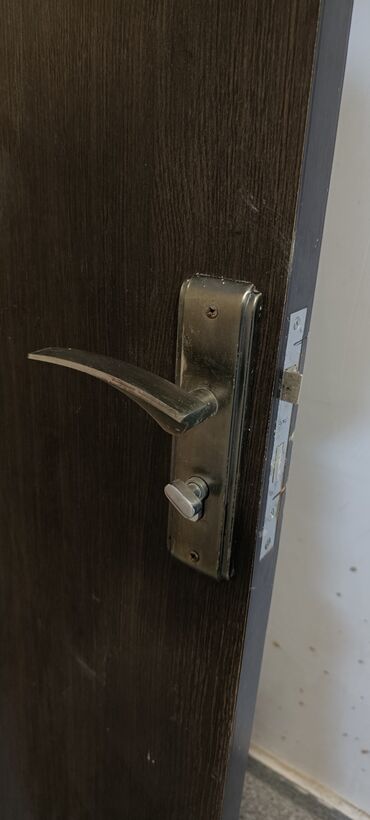 - Material: taxta əsaslı qapı paneli (tünd şabalıd/veneer görünüşlü).