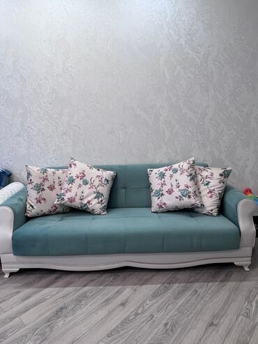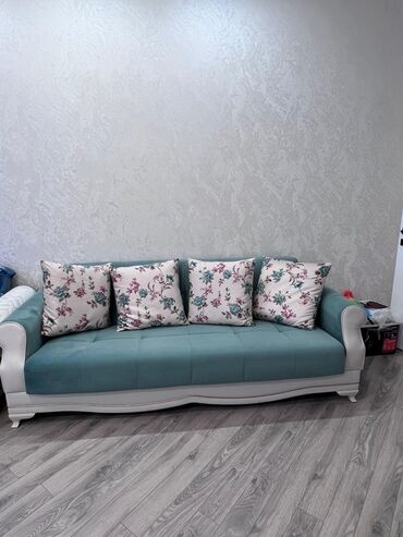 İstikbaldan alınıb , 2 ədəd olduğu üçün çox az işlənib . Kitab kimi açılır . Komfortludur . Bazalıdır . Açıldıqda çox geniş yataq kimi istifadə edilir . Aşağı hissədə zərif dalğalı baza və nazik qızılı xətt dekoru var. Komplektə 4 ədəd iri ölçülü, krem fonlu, çiçək naxışlı dekorativ yastıq daxildir. Oturacaq hissəsi kvadrat tikiş panelləri ilə işlənib, arxa hissə yumşaq yastıqlar ilə dəstəklənir. Yumşaq, məxməri toxumalı parça gündəlik istifadəyə uyğundur və interyerə romantik-klassik görünüş qatır. Yataq funksiyası var . oturacaq genişliyi və yastıq sayı sayəsində qonaq otağı, salon və ya studiya məkanları üçün münasibdir.