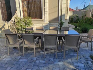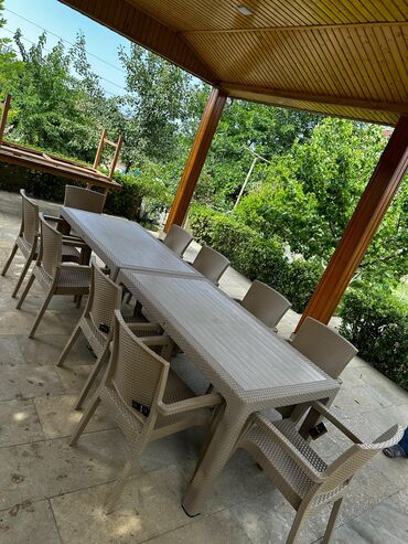 Yeni, Dördbucaq masa, 10 stul, Açılan, Stullar ilə, Plastik, Türkiyə