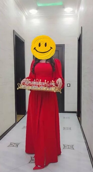 1 ay öncə 300 man alınıb. Bir dəfə toya geyinilib. Ölçü: 44 Məhsul: Qadın gecə/libas Brend: ADM Exclusive Ölçü: TR 44 / EU 44 / RU 50 Rəng: Tünd göy (şimmerli parıltılı) Təsvir: - Uzun, zərif silu...