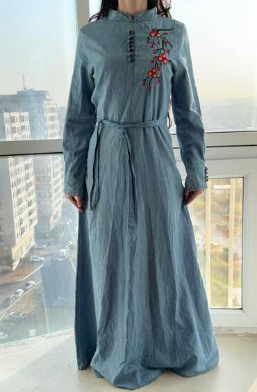 Cins maxi don – zərif və rahat gündəlik stil üçün. Istifade edilmeyib tezedir - Material: mavi denim (cins) - Kəsim: uzun, geniş ətəkli, modest/örtülü siluet - Yaxa və ön hissə: düyməli planka - Q...